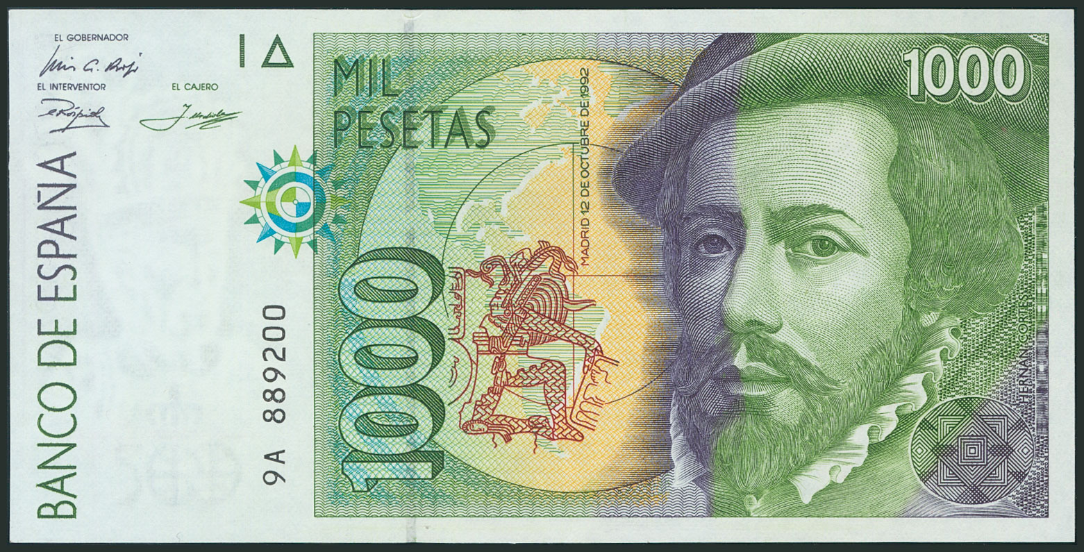 English 1000 pesetas. October 12, 1992. Special Series 9A, Type I. (Edifil 2017: 483c). Uncirculated.