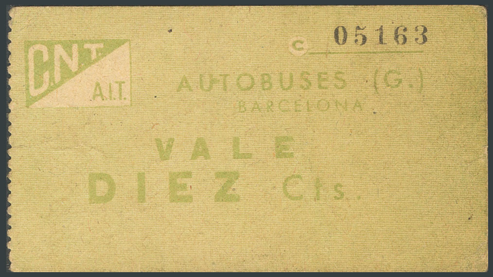 BUSES CNT-AIT (BARCELONA). 10 cents. (1938ca). (Gonzalez: 6545). Good Very Fine.
