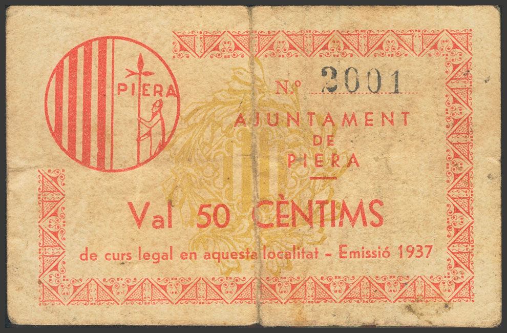 English PIERA (BARCELONA). 50 cents. 1937. (González: 9210). Unusual. Good Fine.