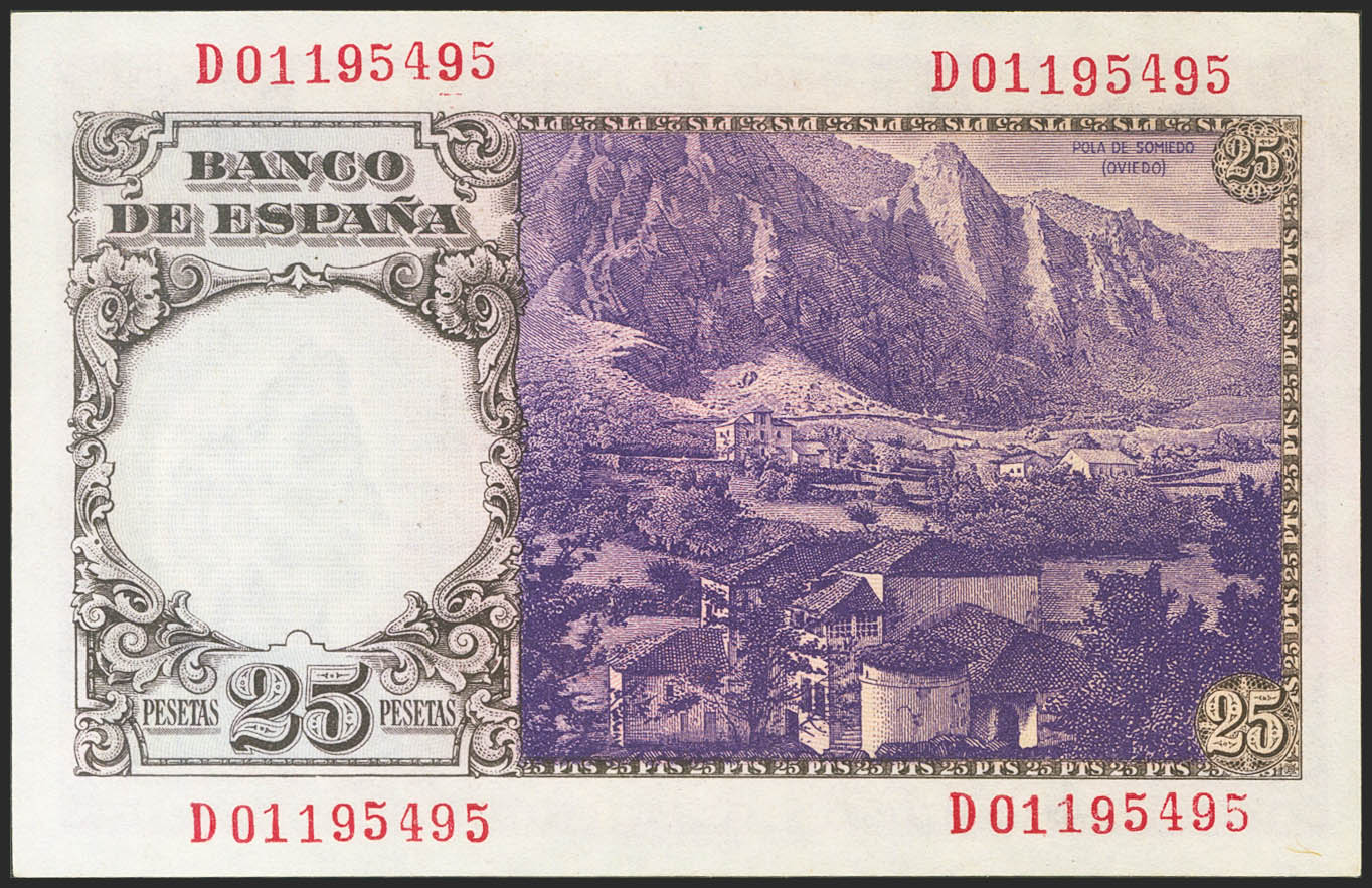 25 pesetas. February 19, 1946. Series D. (Edifil 2021: 450a). original sizing Almost Uncirculated.