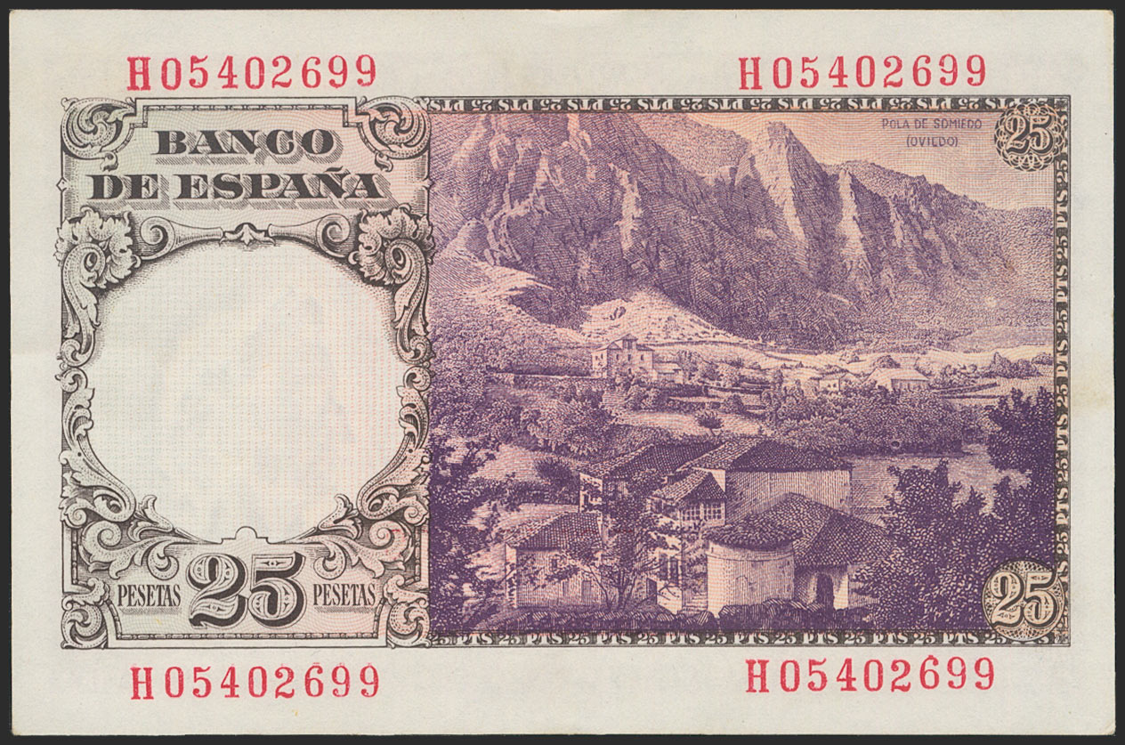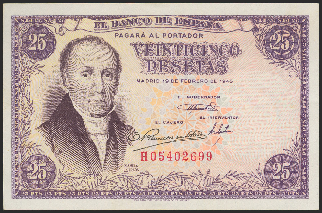 25 pesetas. February 19, 1946. Series H. (Edifil 2021: 450a). original sizing Almost Uncirculated.