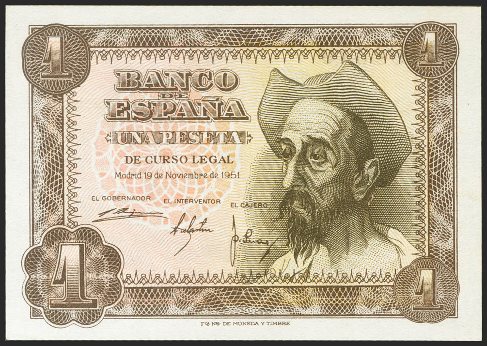 1 peseta. November 19, 1951. No series. (Edifil 2021: 461). original sizing Uncirculated.