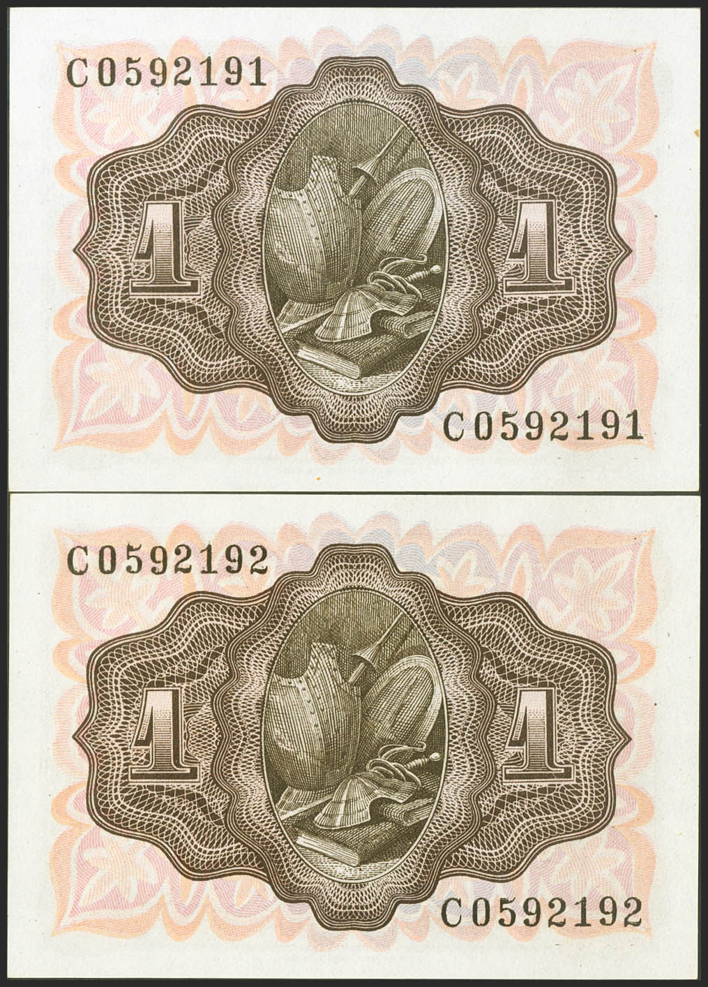 1 peseta. November 19, 1951. Correlative couple. Series C. (Edifil 2021: 461a). original sizing Uncirculated.