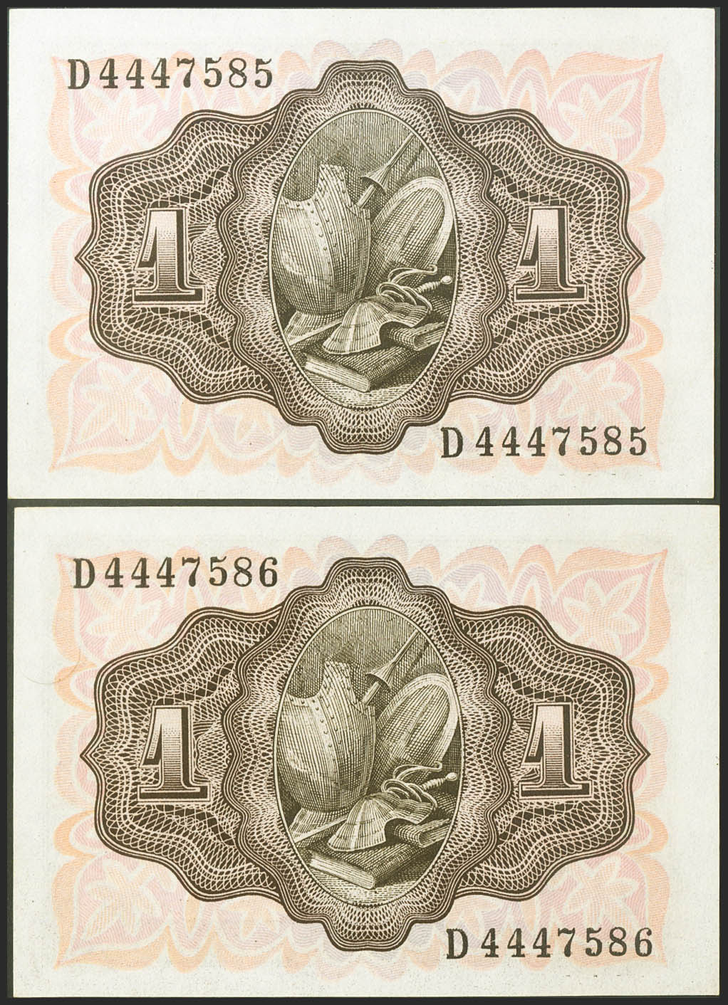 1 peseta. November 19, 1951. Correlative couple. Series D. (Edifil 2021: 461a). original sizing Uncirculated.