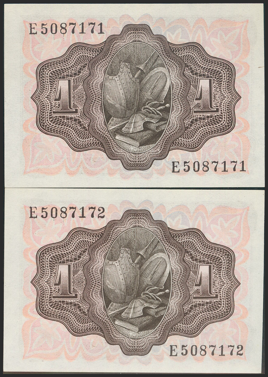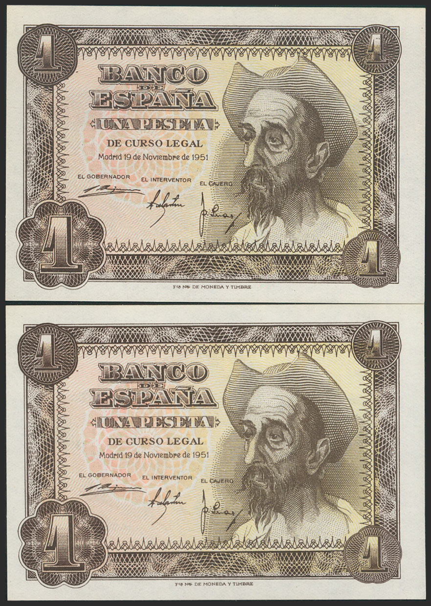 1 peseta. November 19, 1951. Correlative couple. Series E. (Edifil 2021: 461a). original sizing Uncirculated.