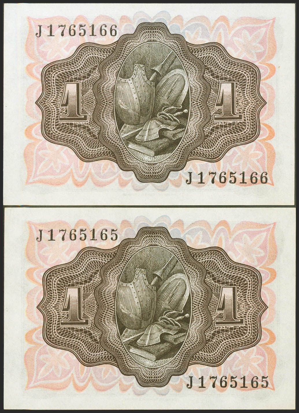 1 peseta. November 19, 1951. Correlative couple. Series J. (Edifil 2021: 461a). original sizing Uncirculated.