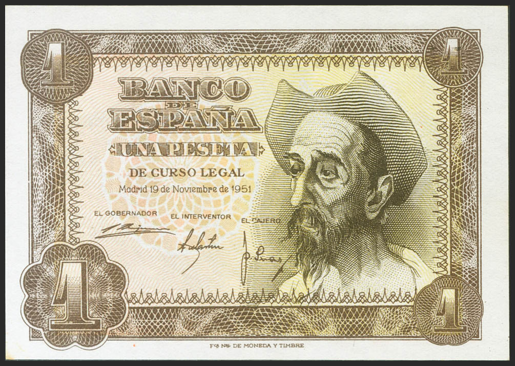 1 peseta. November 19, 1951. Series L. (Edifil 2021: 461a). original sizing Almost Uncirculated.