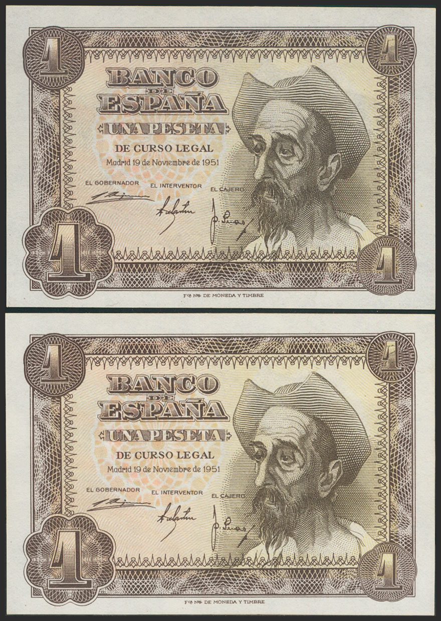1 peseta. November 19, 1951. Correlative couple. Series S. (Edifil 2021: 461a). original sizing Uncirculated.