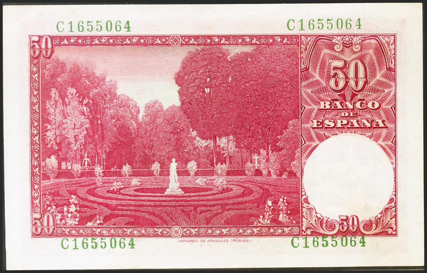 50 pesetas. December 31, 1951. Series C, last series issued. (Edifil 2021: 462a). original sizing Good Extremely Fine.