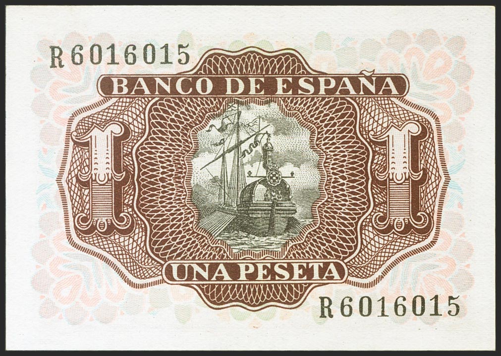 1 peseta. July 22, 1953. Series R. (Edifil 2021: 465a). original sizing Uncirculated.