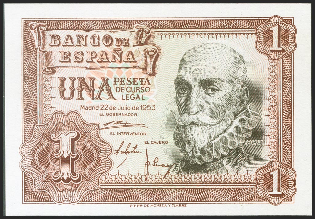1 peseta. July 22, 1953. Series R. (Edifil 2021: 465a). original sizing Almost Uncirculated.