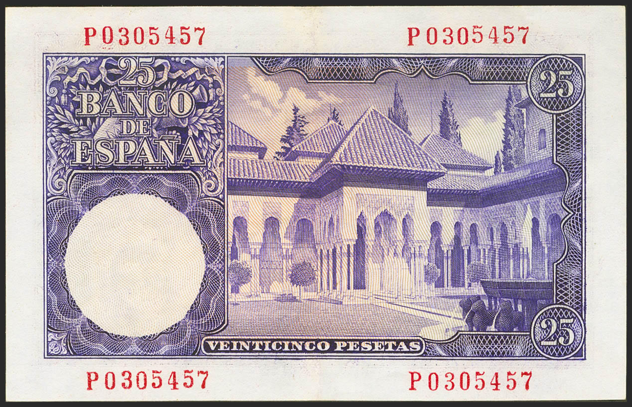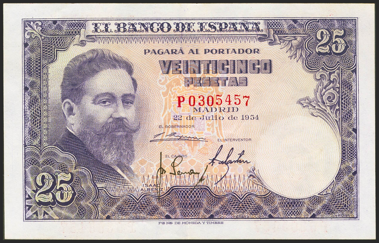 25 pesetas. July 22, 1954. Series P, last series issued. (Edifil 2021: 467b). It retains much of its original size. Extremely Fine.