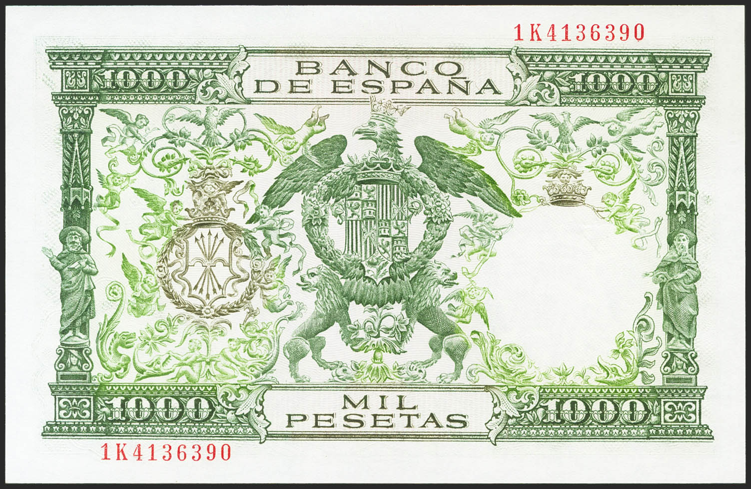 1000 pesetas. November 29, 1957. Series 1K. (Edifil 2021: 469b). It retains all its original sizing. Uncirculated.
