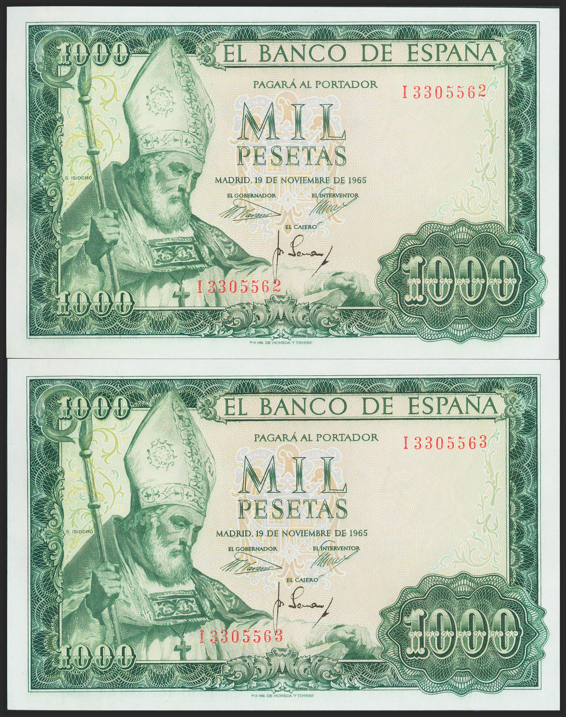 English 1000 pesetas. November 19, 1965. Correlative couple. Series I. (Edifil 2017: 471b). It retains all its original sizing. Almost Uncirculated.