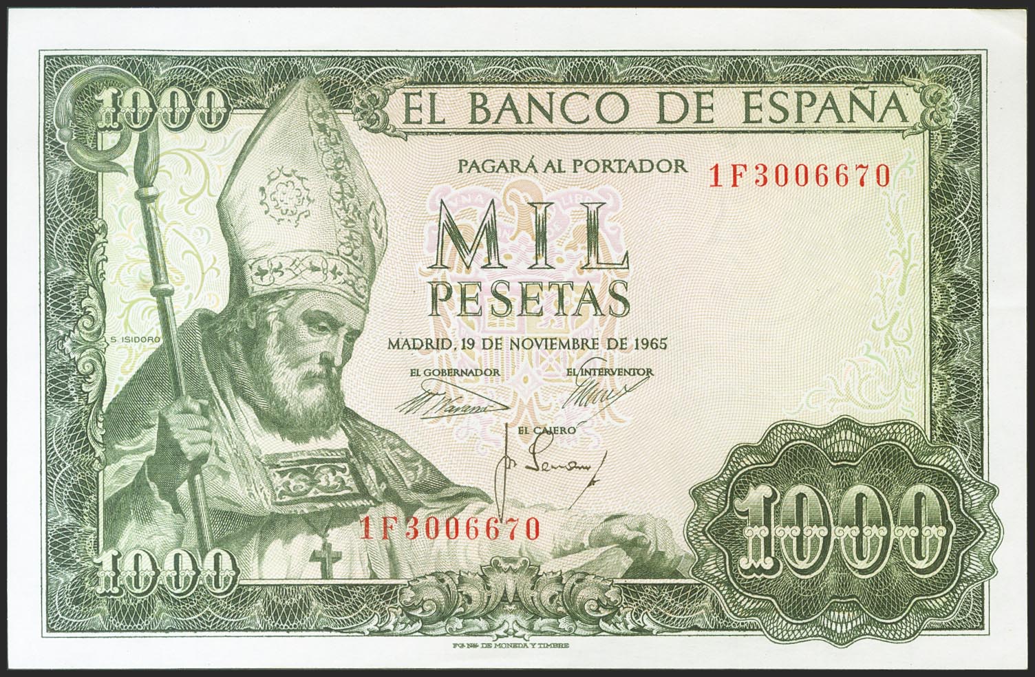 1000 pesetas. November 19, 1965. Series 1F. (Edifil 2021: 471b). original sizing Almost Uncirculated.