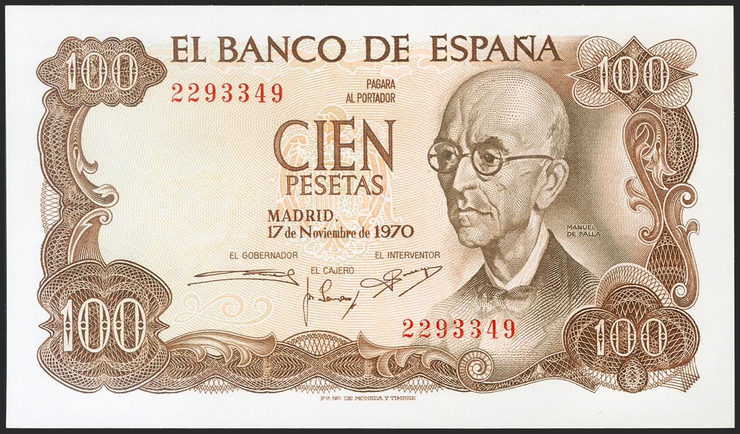 100 pesetas. November 17, 1970. No series. (Edifil 2021: 472). original sizing Uncirculated.