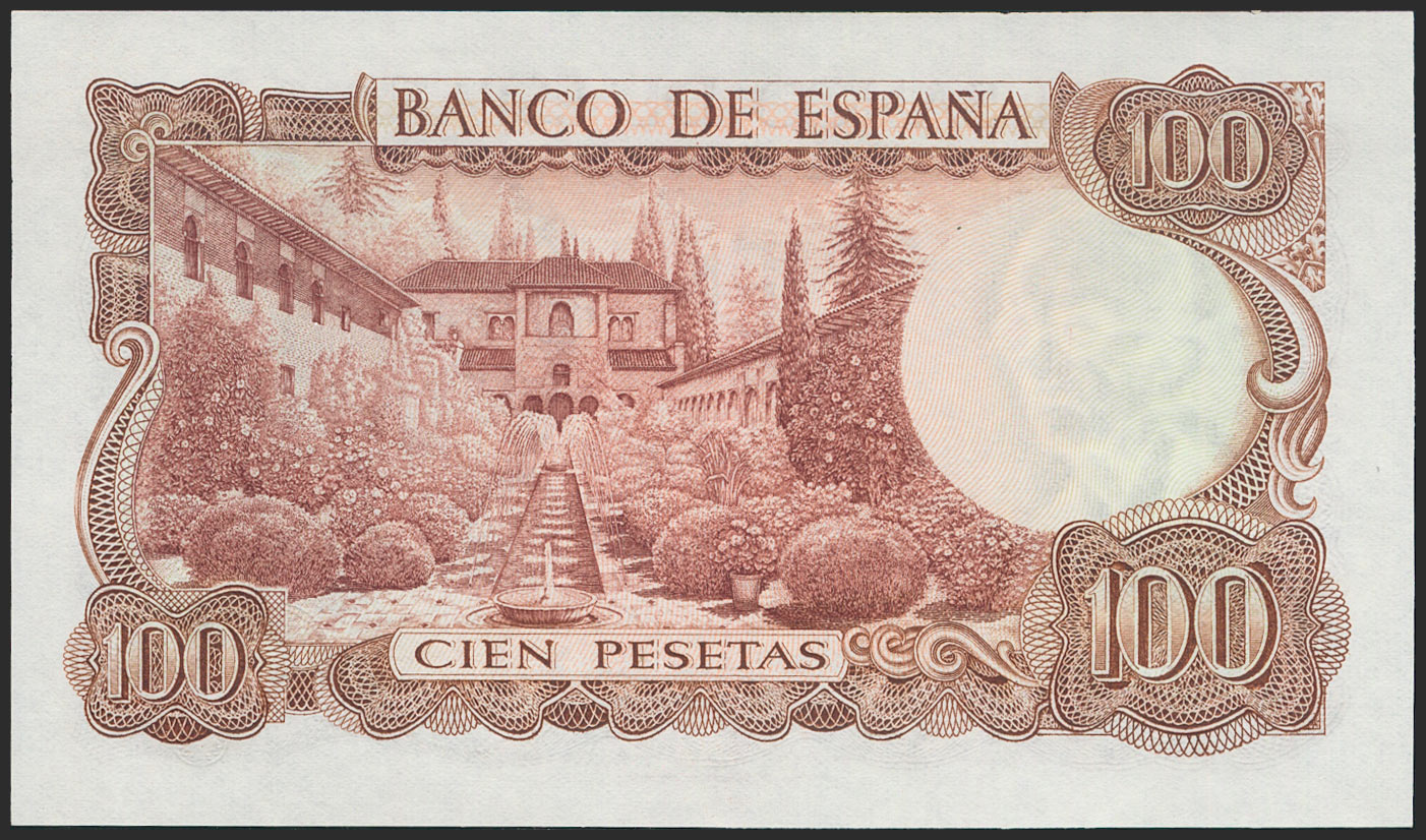 English 100 pesetas. November 17, 1970. Series 7N. (Edifil 2021: 472c). Uncirculated.