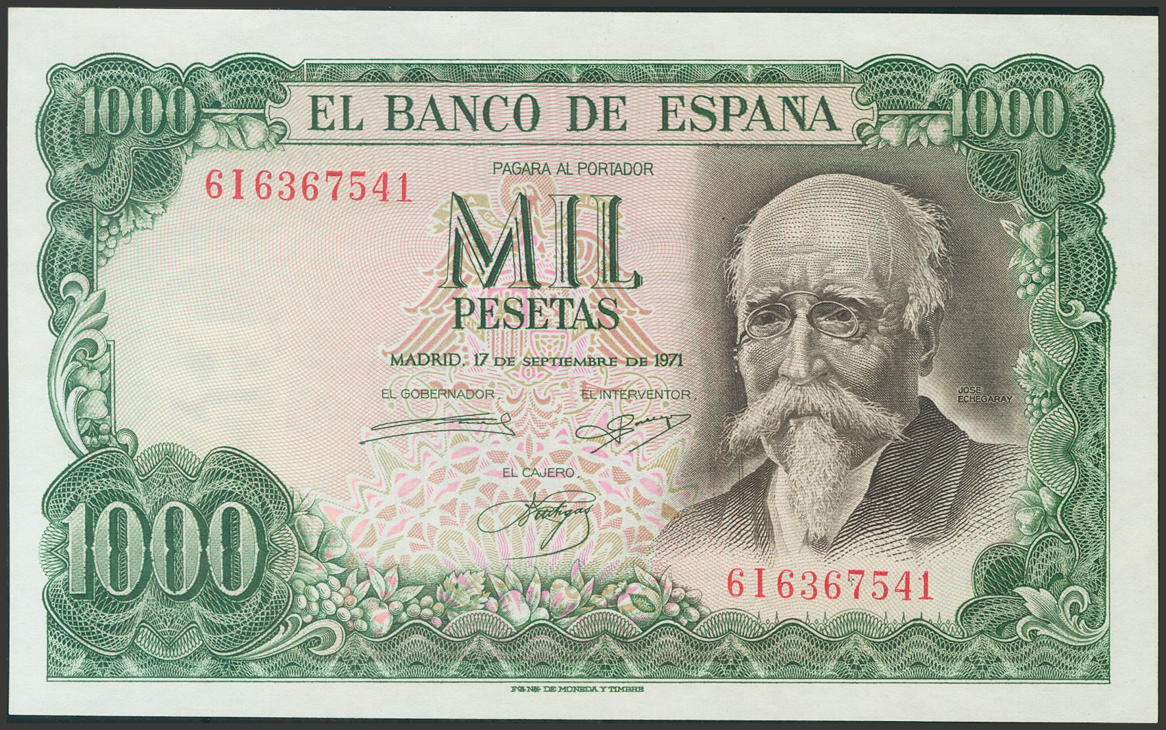 1000 pesetas. September 17, 1971. Series 6I. (Edifil 2017: 474c). original sizing Almost Uncirculated.