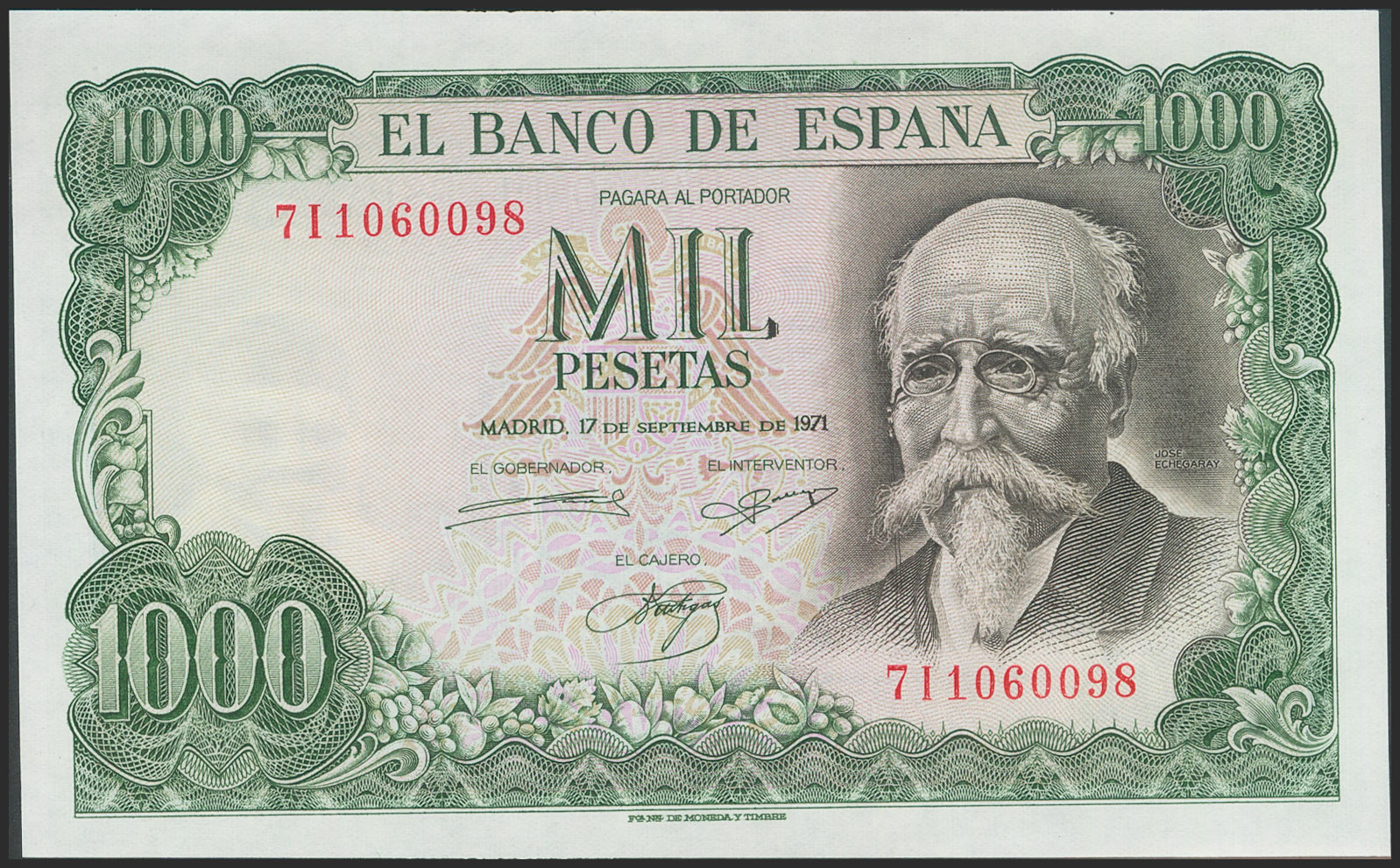 1000 pesetas. September 17, 1971. Series 7I. (Edifil 2021: 474c). original sizing Uncirculated.