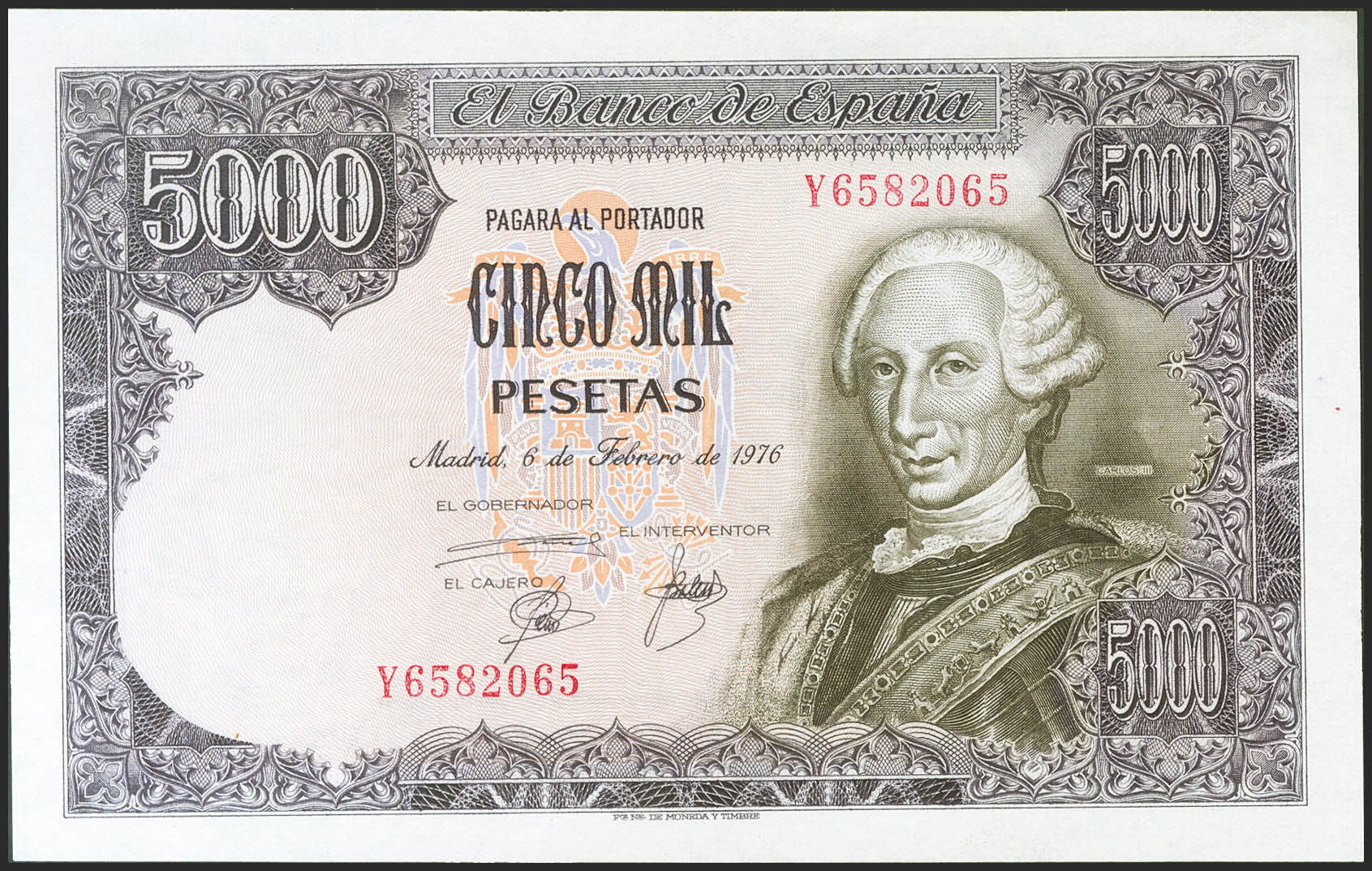 5000 pesetas. February 6, 1976. Series Y. (Edifil 2021: 475a). original sizing Uncirculated.