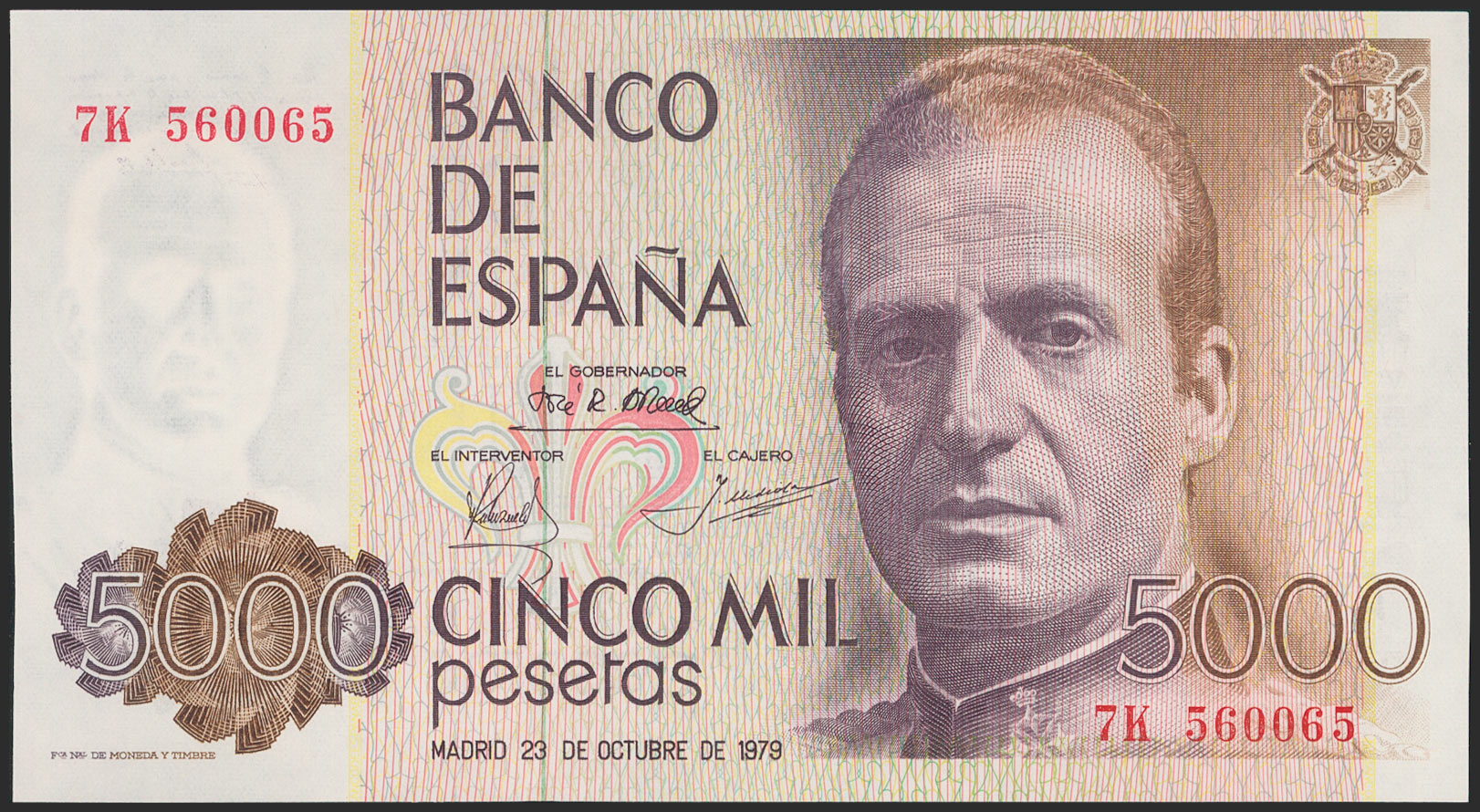5000 pesetas. October 23, 1979. Series 7K. palindrome numbering. (Edifil 2021: 478a). Uncirculated.