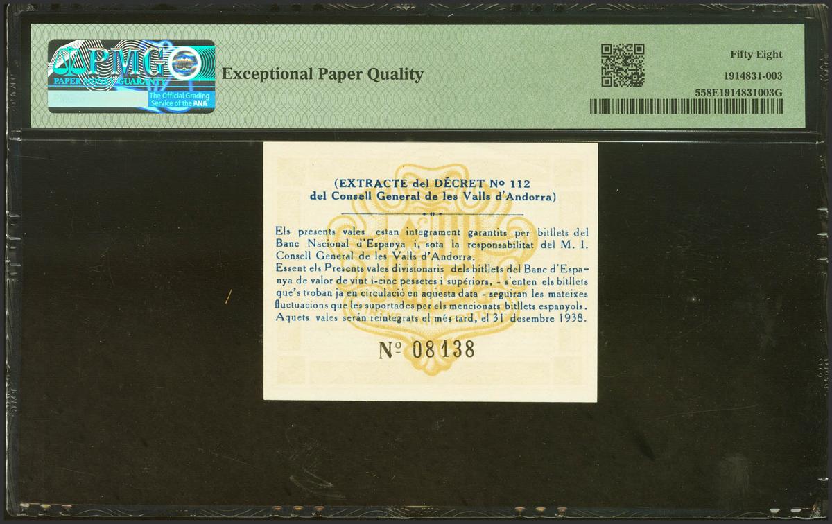 ANDORRA. 50 Centims. December 19, 1936. No series. (Edifil 2021: 1, Pick: 5). Original sizing. Uncirculated. PMG58EPQ package.