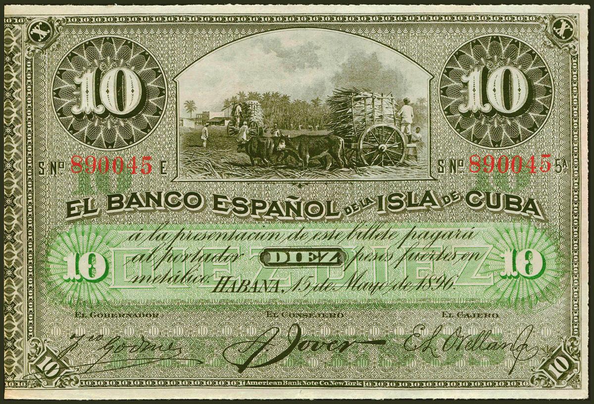 SPANISH BANK OF THE ISLAND OF CUBA. 10 pesos. May 15, 1896. Series E and with the SILVER overlay, on the back. (Edifil 2021: 82). Needle point. Almost Uncirculated.