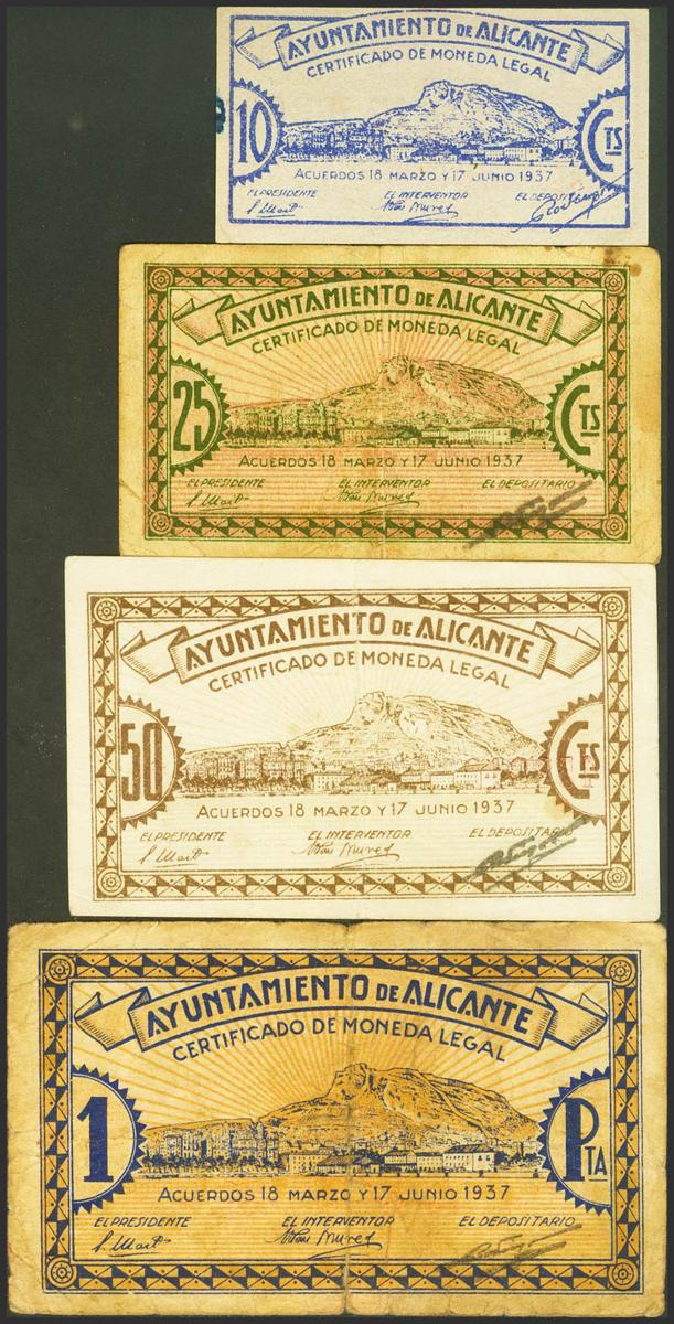 ALICANTE. 10 Cents, 25 Cents, 50 Cents and 1 Peseta. Series D, C, B and A, respectively. (González: 507/10). Complete series. Almost Extremely Fine/ Good Fine.