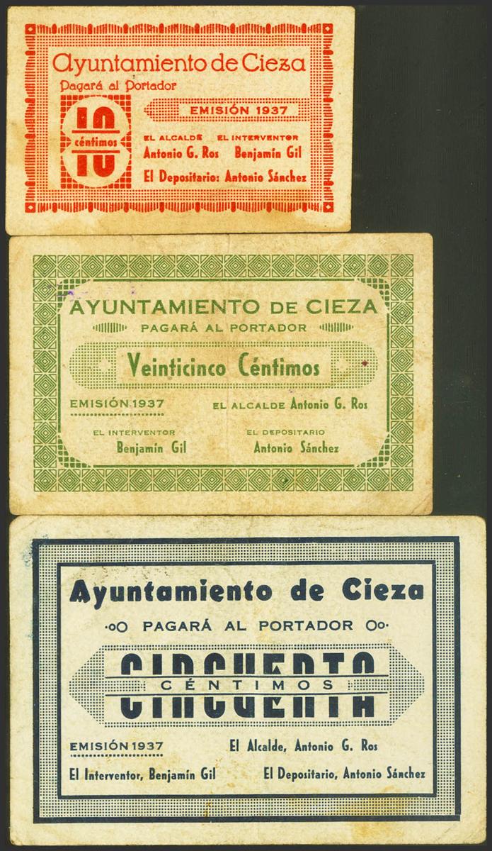 CIEZA (MURCIA). 10 Cents, 25 Cents and 50 Cents. 1937. (González: 1964/66). Complete series. Very Fine/ Uncirculated.