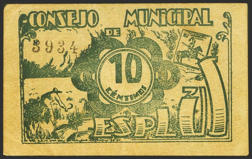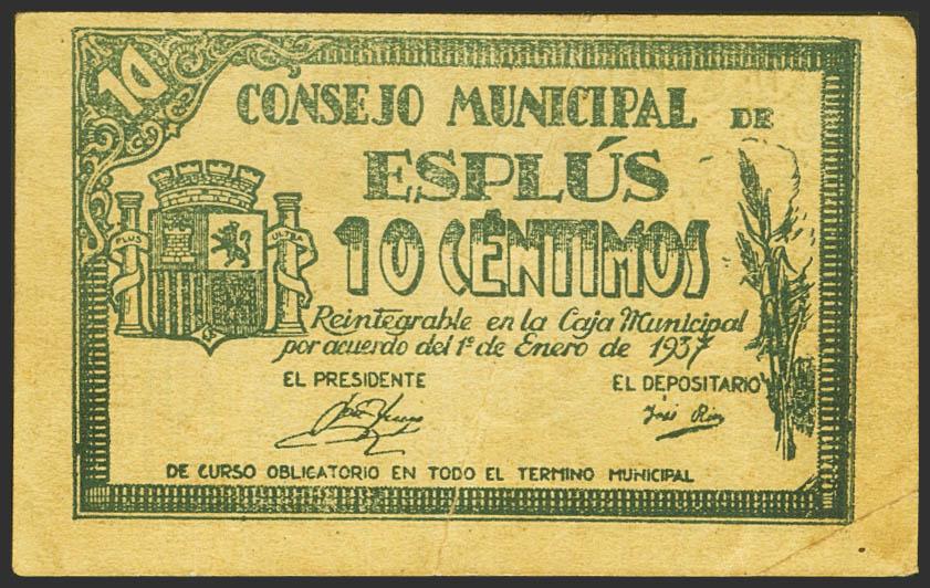 ESPLUS (HUESCA). 10 Cents. January 1, 1938. (González: 2344). Unusual. Good Very Fine.