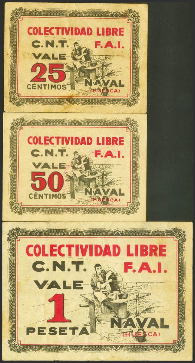 NAVAL (HUESCA). 25 Cents, 50 Cents and 1 Peseta. (1937ca). (González: 3810, 3811, 3811). Very rare. Good Very Fine.