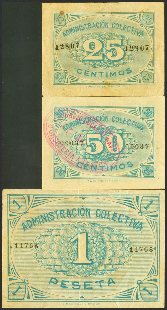NAVAL (HUESCA). 25 Cents, 50 Cents and 1 Peseta. (1937ca). (González: 3810, 3811, 3811). Very rare. Good Very Fine.