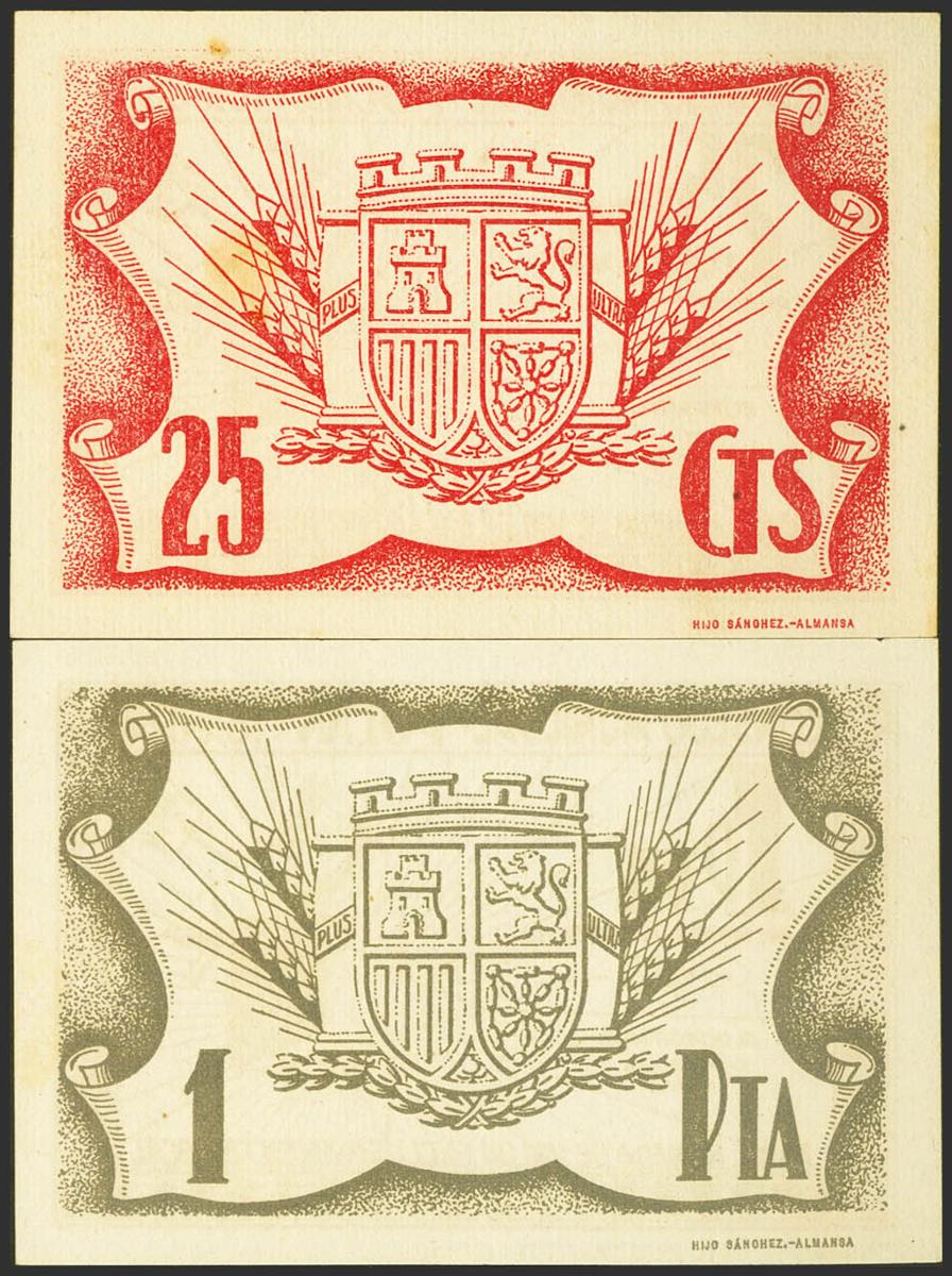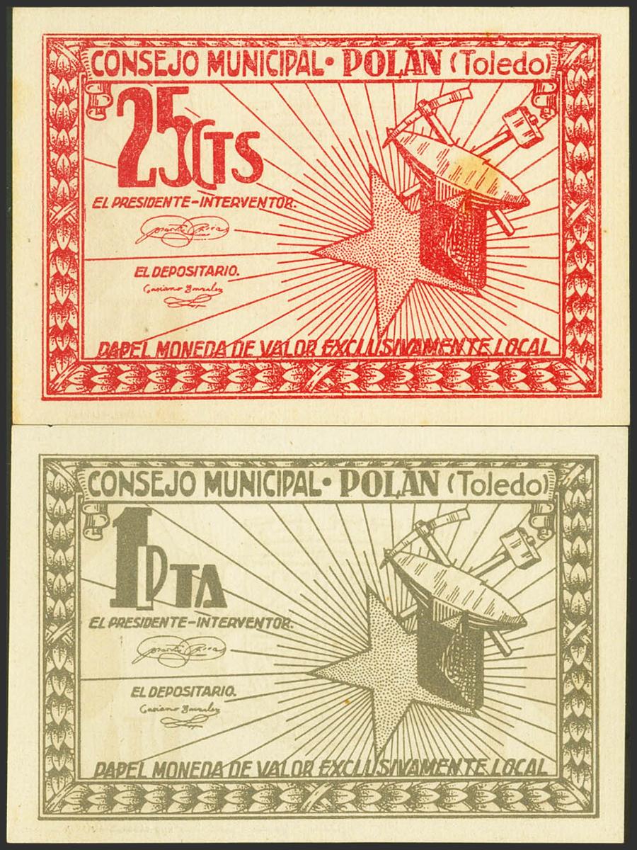 POLAN (TOLEDO). 25 Cents and 1 Peseta. (1938ca). (González: 4219, 4220). Unusual, especially in this exceptional quality. Uncirculated/ Almost Uncirculated.