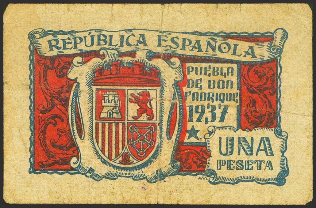VILLAGE OF DON FADRIQUE (GRANADA). 1 Peseta. (1937ca). (González: 4328). Unusual. Good Fine.