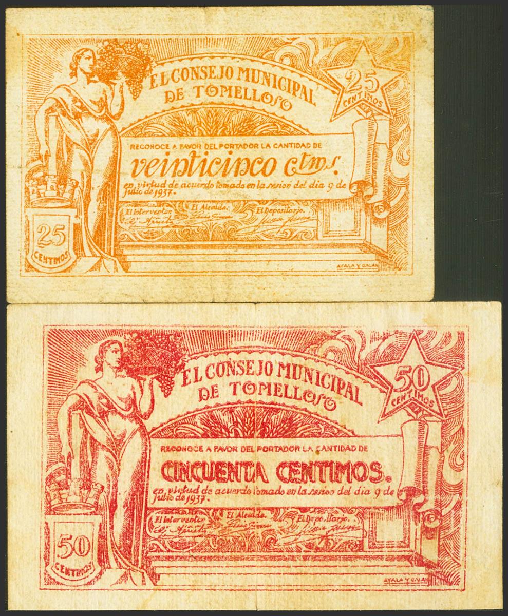 TOMELLOSO (CITY REAL). 25 Cents and 50 Cents. July 9, 1937. (González: 5039, 5040). Unusual. Almost Very Fine/ Good Very Fine.