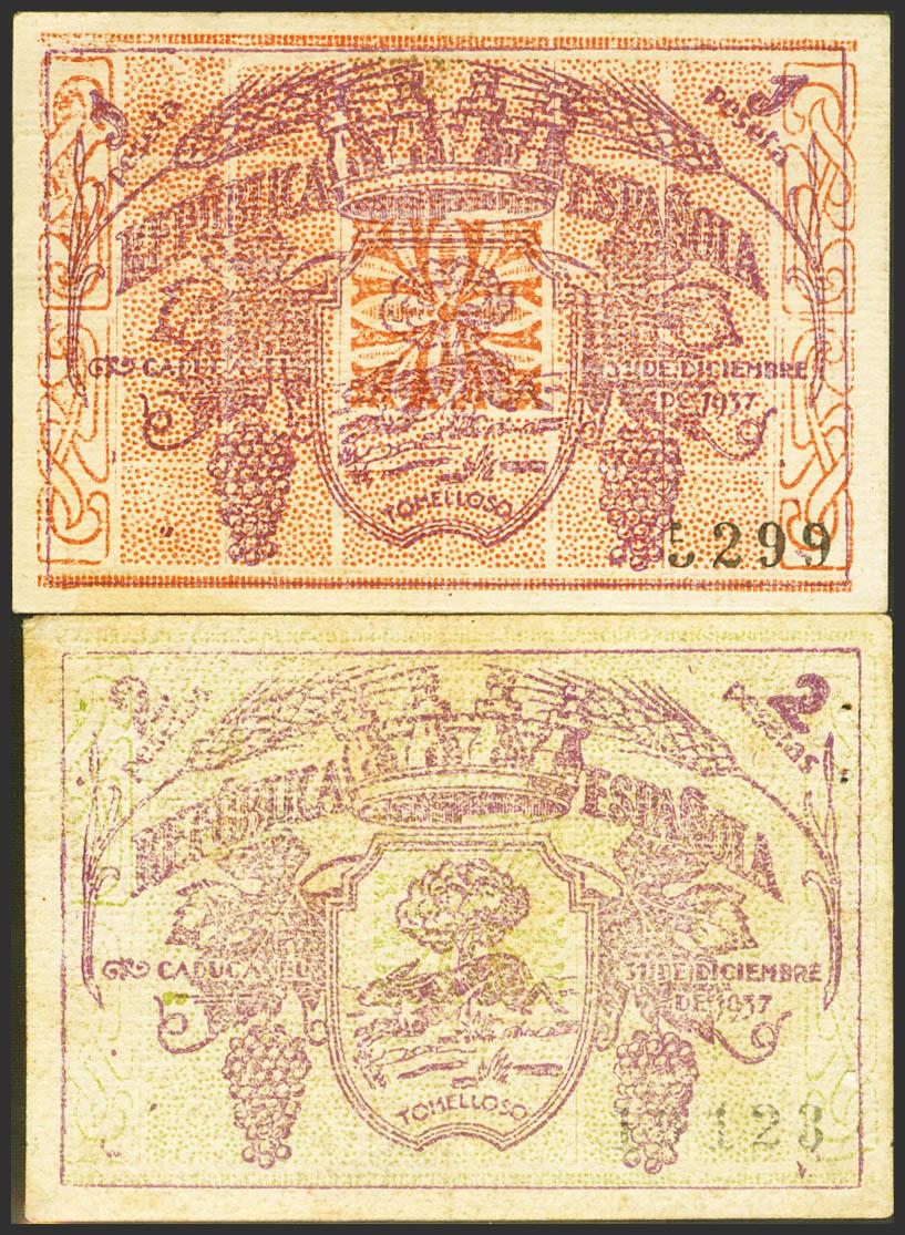 TOMELLOSO (CITY REAL). 1 Peseta and 2 Pesetas. July 9, 1937. (González: 5044, 5045). Unusual. Uncirculated/ Extremely Fine.