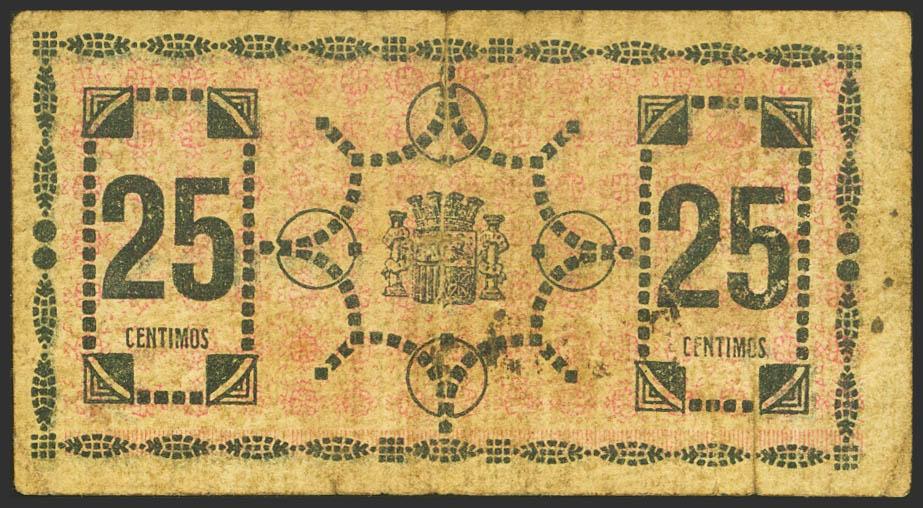 English VERA (ALMERIA). 25 Cents. October 25, 1937. (González: 5465). Rare. Good Fine.