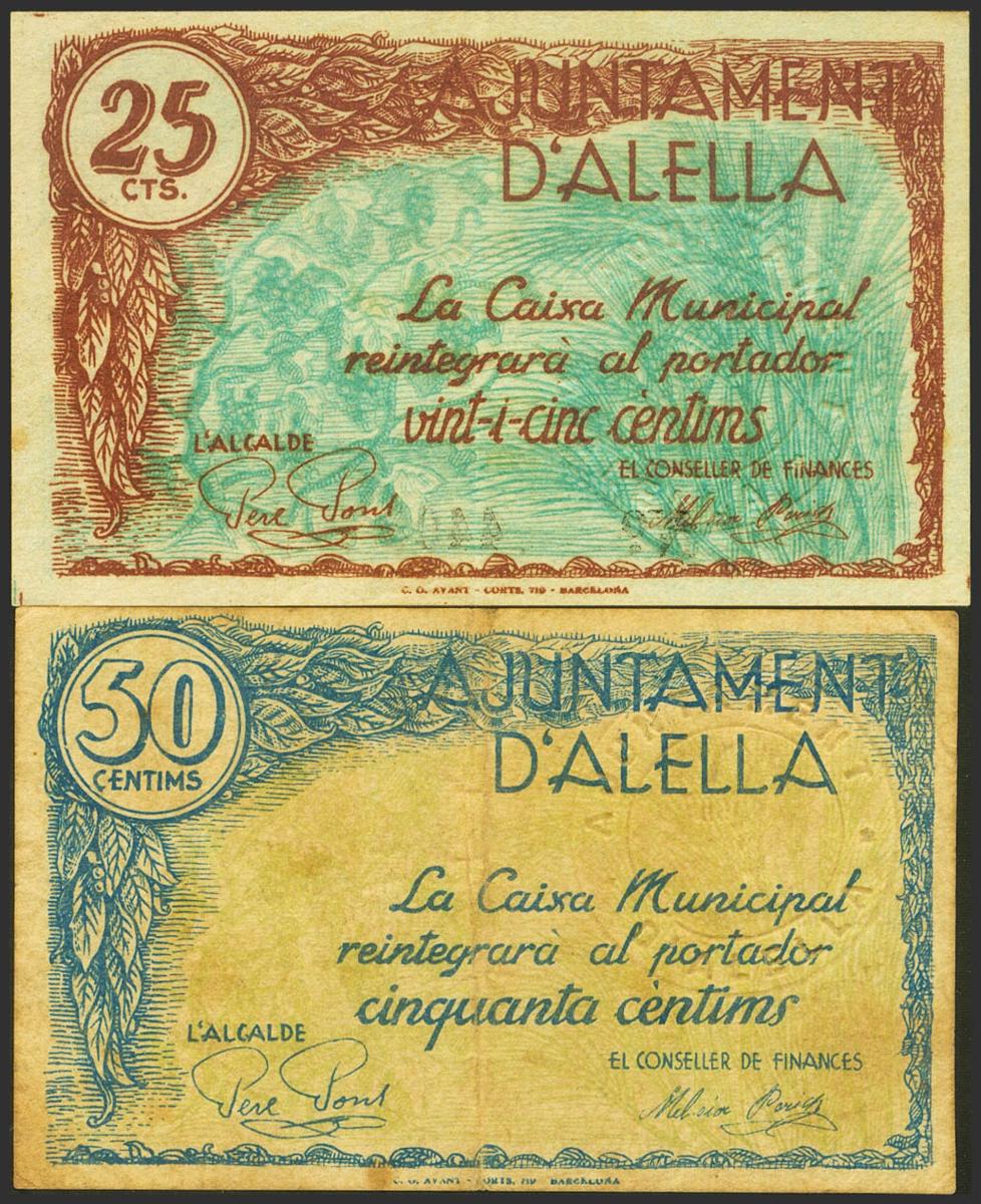 ALELLA (BARCELONA). 25 Cents and 50 Cents. (1938ca). (González: 6158, 6159). Extremely Fine/ Very Fine.