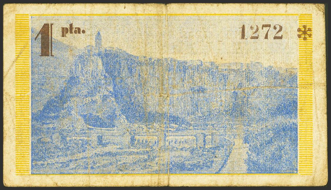English CASTELLFOLLIT DE LA ROCA (GERONA). 1 Peseta. June 12, 1937. Series A. (González: 7459). Almost Very Fine.