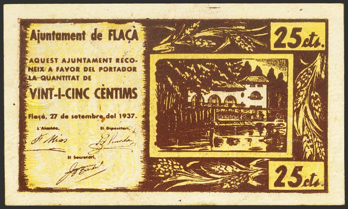 FLACA (GERONA). 25 Cents. September 27, 1937. (González: 7881). Extremely Fine.