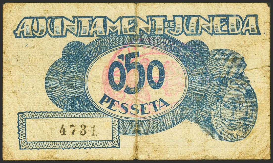 JUNEDA (LERIDA). 50 Cents. September 4, 1937. (González: 8297). Unusual. Almost Very Fine.