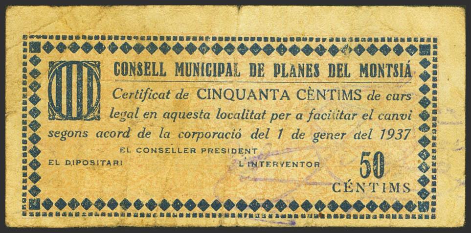 MONTSIA'S PLANS. 50 Cents. January 1, 1937. (González: 9289). Rare. Almost Very Fine.