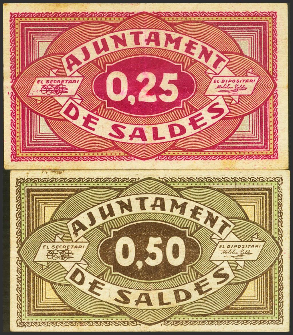 SALDES (BARCELONA). 25 Cents and 50 Cents. June 10, 1937. (González: 9816). Rare. Good Very Fine.