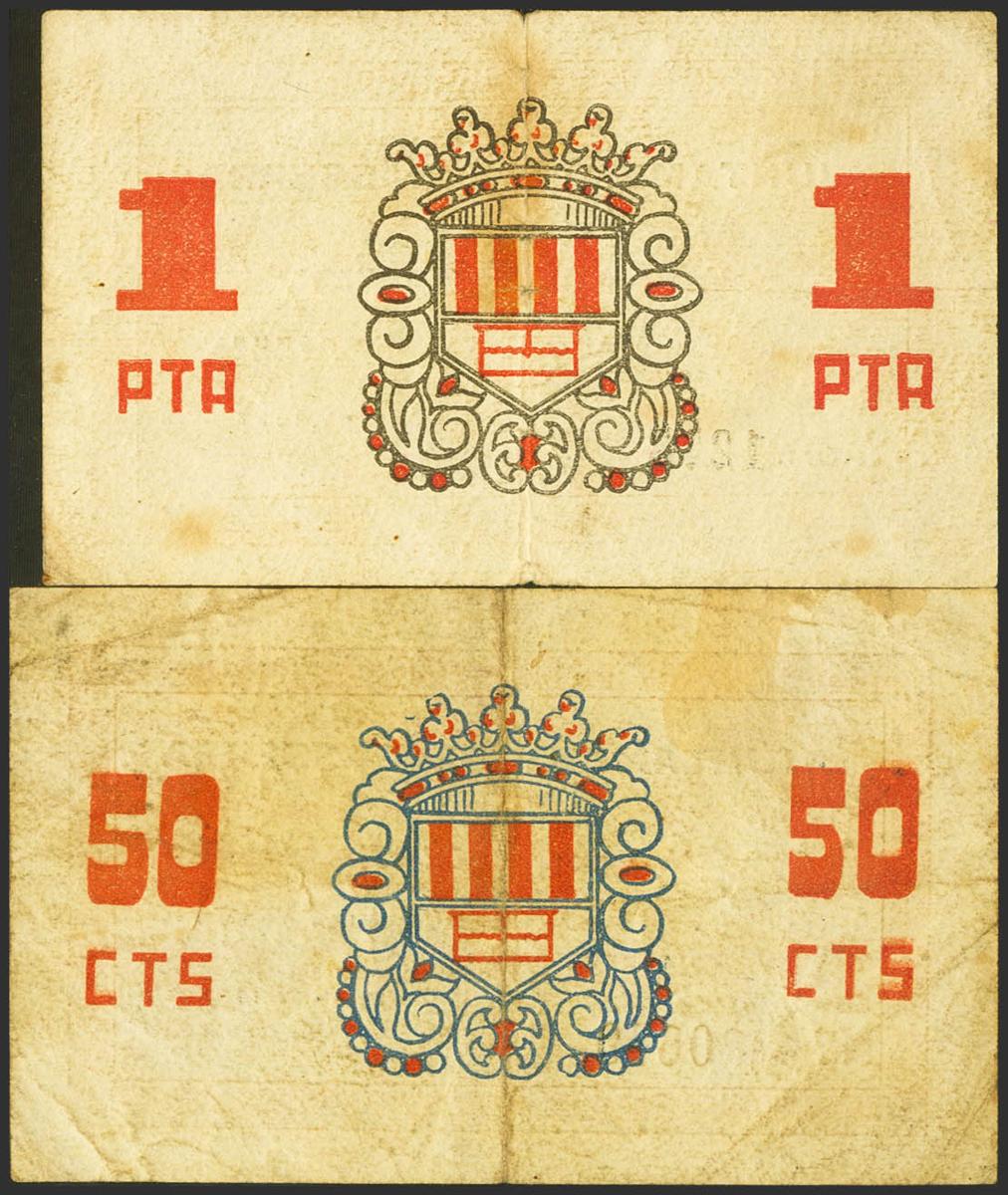 SASSERRA (BARCELONA). 50 Cents and 1 Peseta. June 18, 1937. (González: 9898/99). Very Fine.