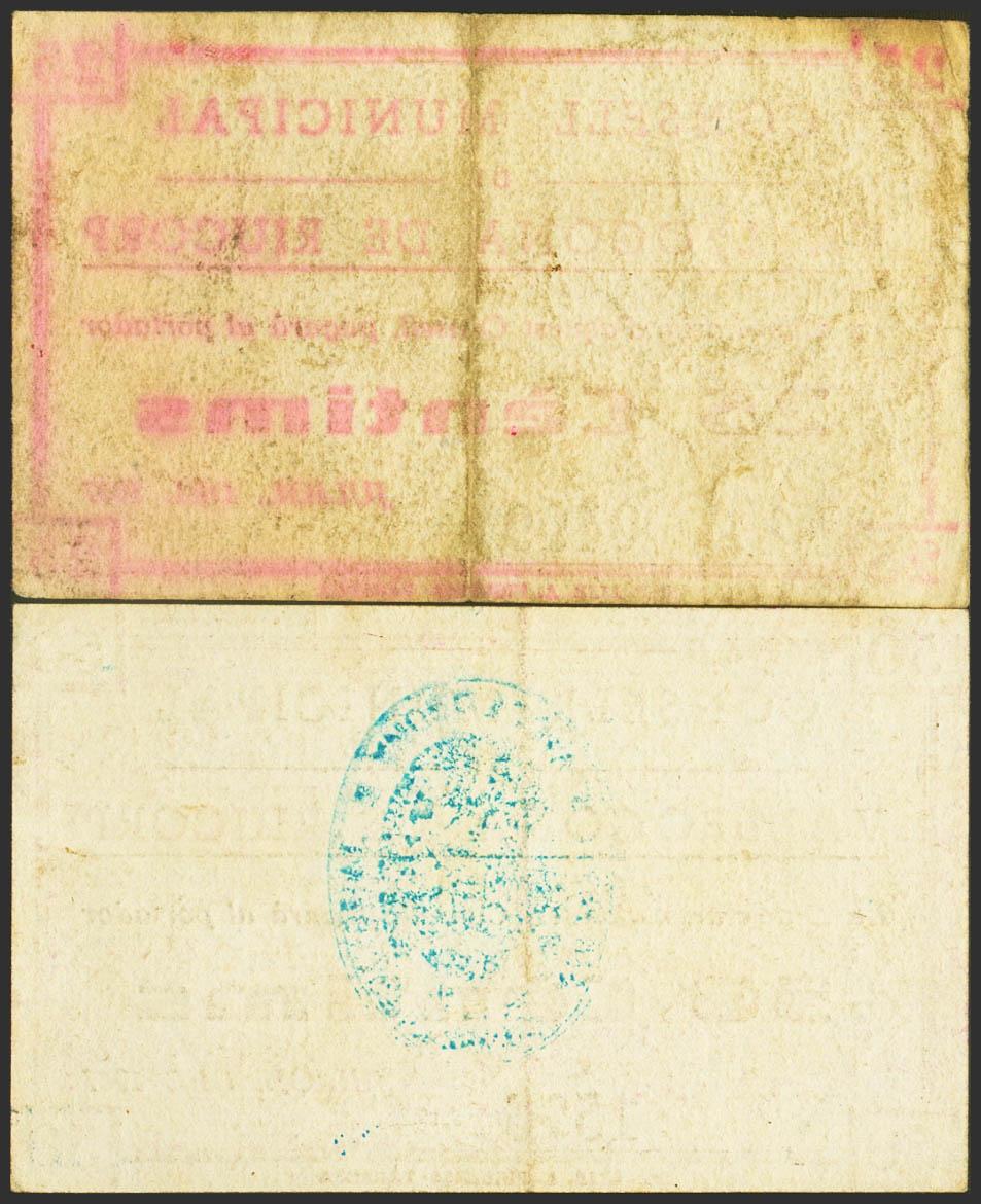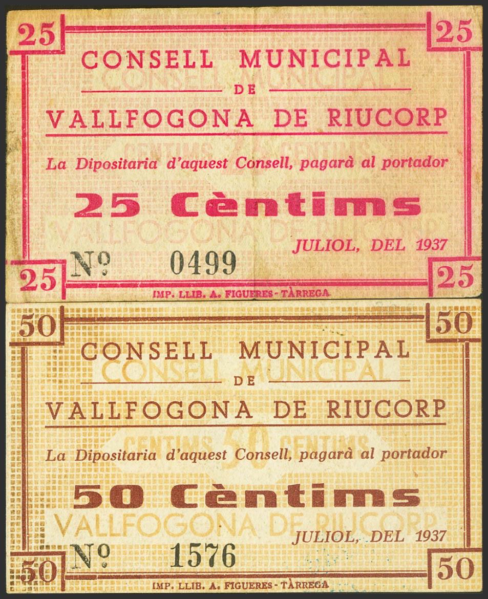 VALLFOGONA DE RIUCORP (TARRAGONA). 25 Cents and 50 Cents. July 1937. (González: 10516, 10517). Unusual. Very Fine/ Extremely Fine.