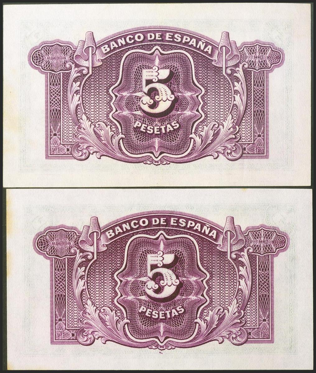 Set of 2 5 Pesetas Silver Certificate banknotes issued in 1935 with series C and D. (Edifil 2021: 363a). Uncirculated/ Extremely Fine.