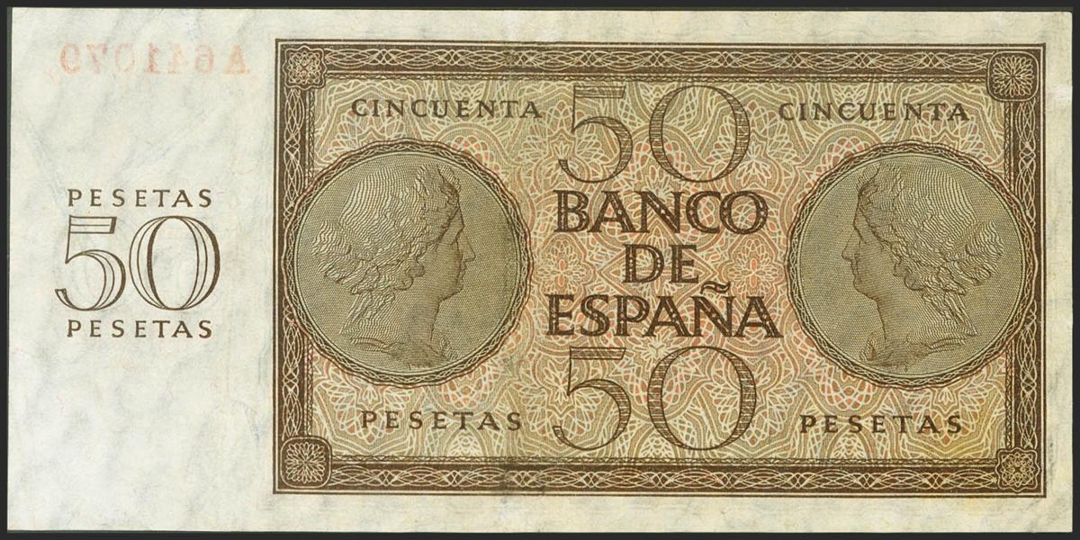 English 50 Pesetas. November 21, 1936. Series A. (Edifil 2021: 420). Almost Extremely Fine.