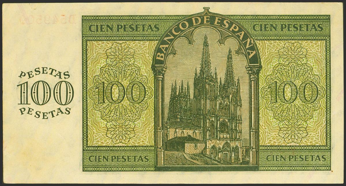 100 Pesetas. November 21, 1936. Series D. (Edifil 2021: 421a). It retains much of its original finish. Good Extremely Fine.