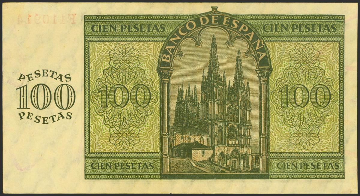100 Pesetas. November 21, 1936. Series F. (Edifil 2021: 421a). It retains much of its original finish. Good Extremely Fine.