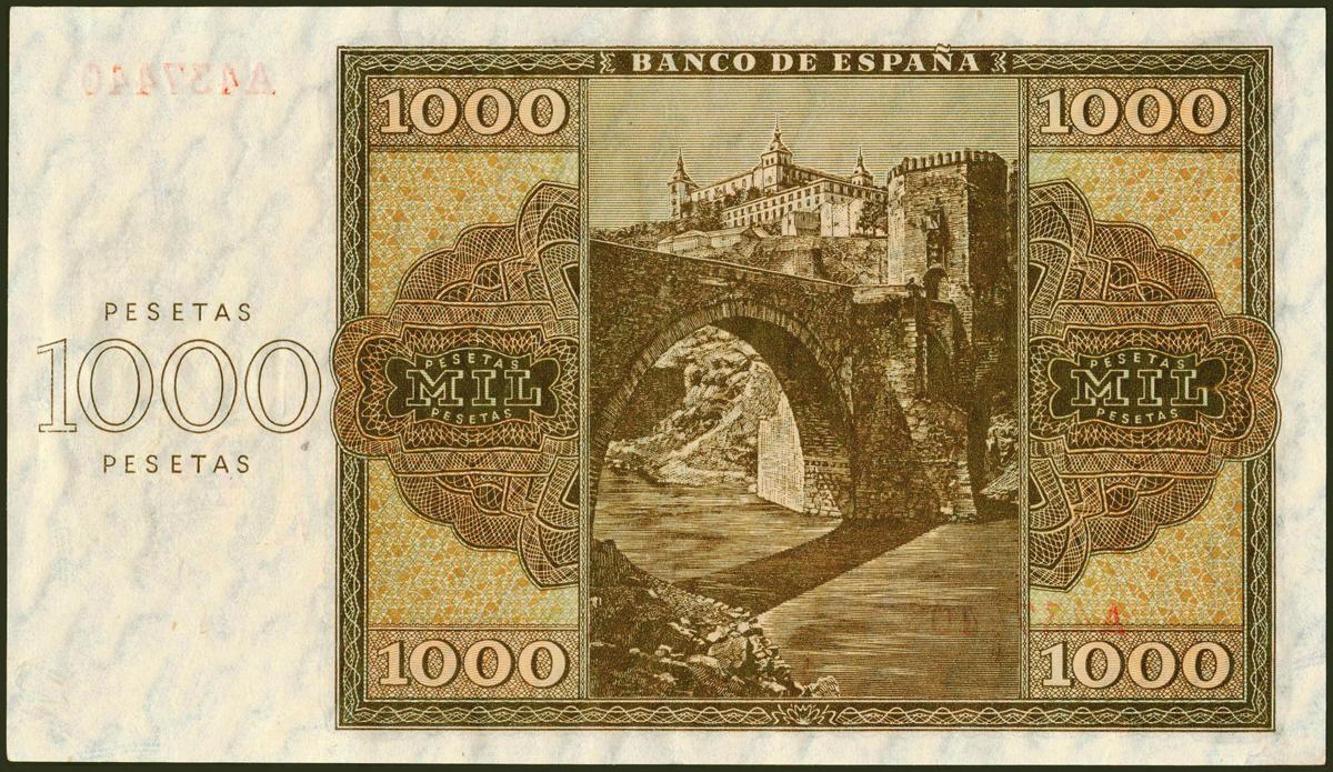 1000 Pesetas. November 21, 1936. Series A. (Edifil 2021: 423). Very rare in this quality, it retains all its original finish. Good Extremely Fine.